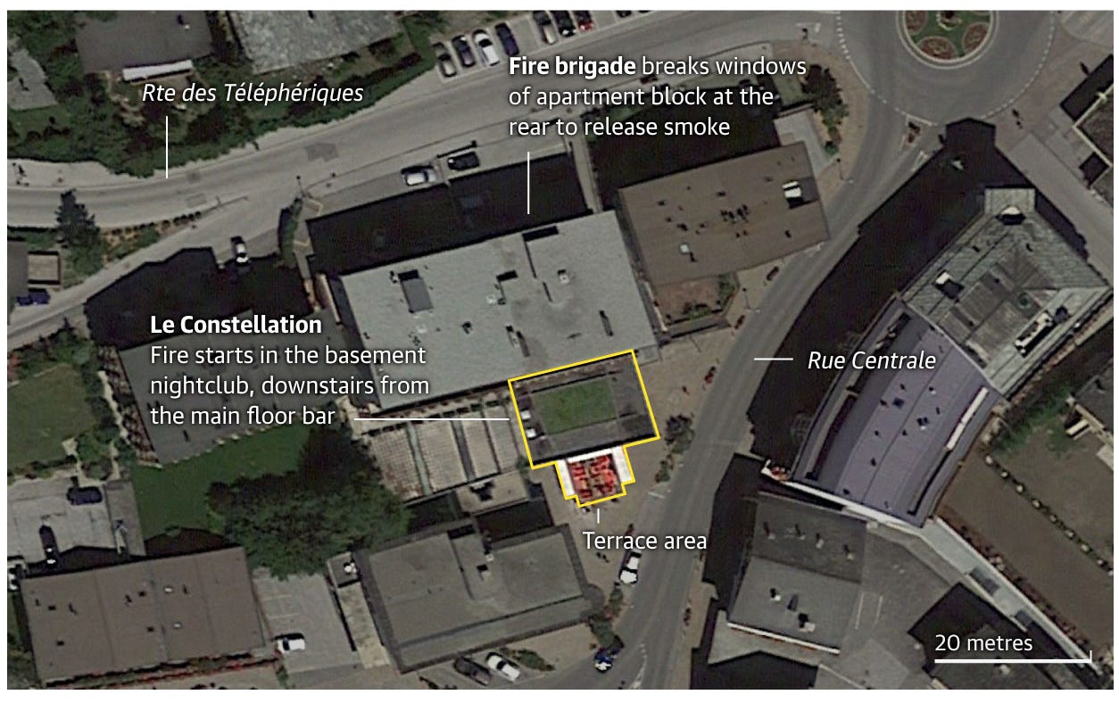 Pilloud confirmed that the staircase leading to the basement was extremely narrow but said it was too early to assess whether emergency exits were adequate or whether safety regulations had been breached.